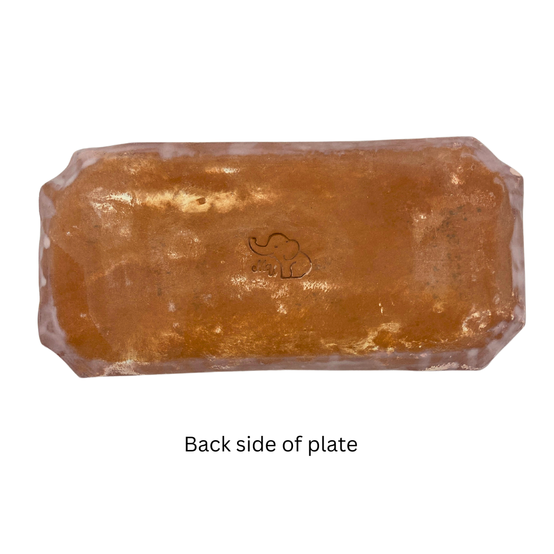 Each dish is hand-crafted with a slab rolled piece and is adorned with a unique impression, making each one truly one-of-a-kind.